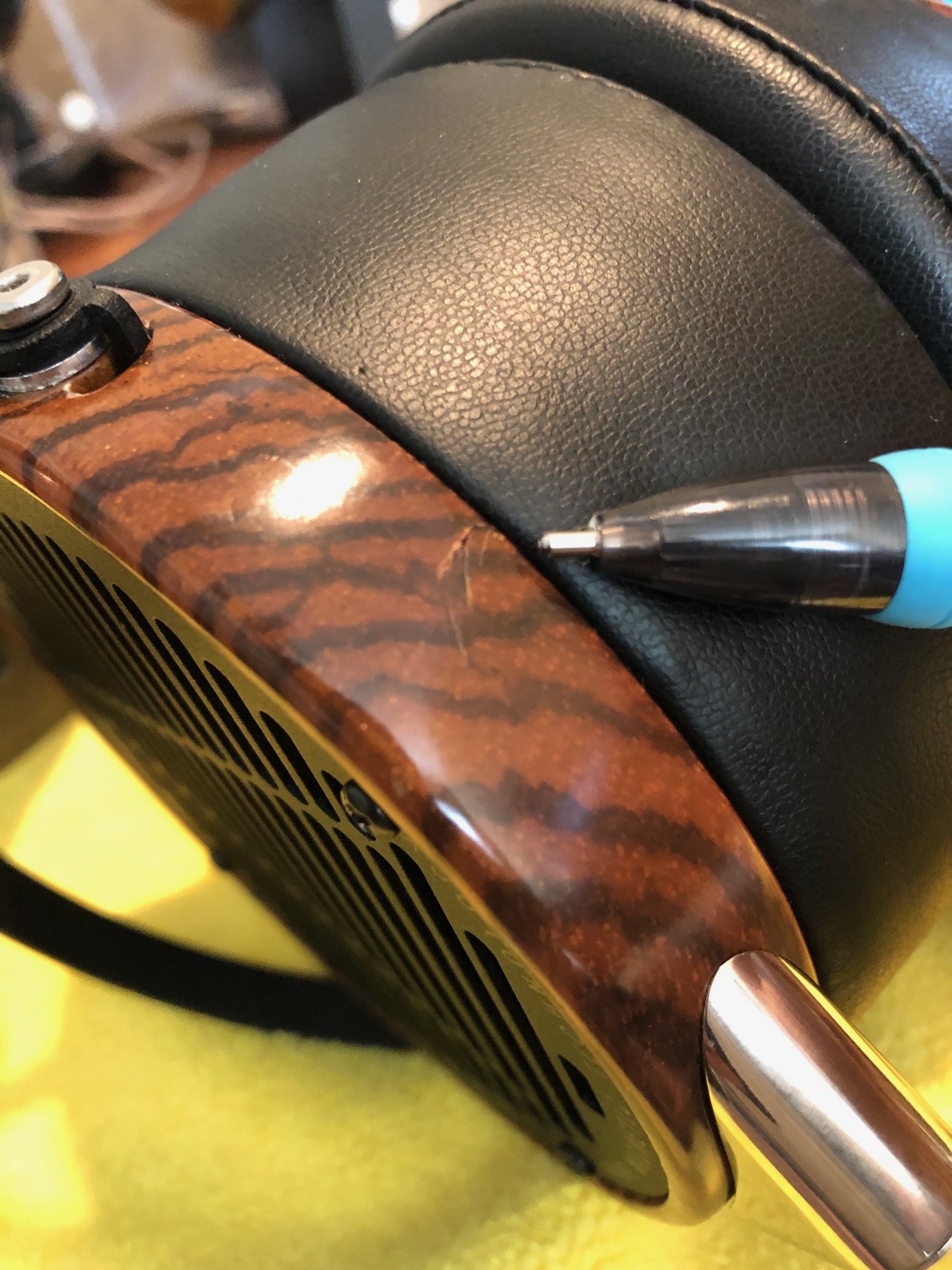 Headphones are in fine condition, no issues except for one scratch/ding (pictured).